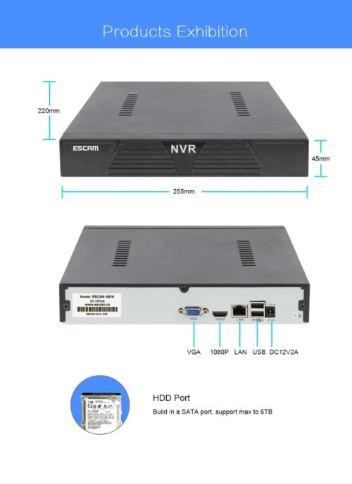 Καταγραφικό 16 καναλιών που δέχεται σκληρό δίσκο μέχρι 6tb. Έχει έξοδο HDMI.Υποστηρίζει το πρωτόκολλο ONVIF και είναι συμβατό με πάρα πολλές μάρκες όπως : AXIS, SONY, Panasonic, SANYO, BOSCH, SAMSUNG, Honeywell, VIVOTEK, Ambarella, HIKVISION, DAHUA, Histream, Grandstream, TOPSEE, Launch, WISION, HYVISION, WAPA κτλ.